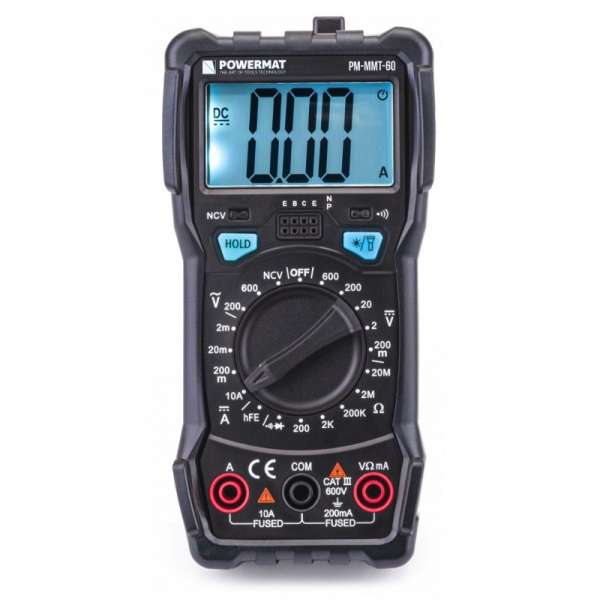 Beépített funkciók: Érintésmentes elektromos mező érzékelési funkció Folytonosságmérés és dióda teszt üzemmódban Ellenállás mérési mód kézi üzemmódban (200/2k/200k/2M/20M) Dióda és folytonosság vizsgálati mód hFE mód a tranzisztorteszthez Egyenáram mérési mód kézi üzemmódban (2m/20m/200m/10A) AC feszültség mérési mód kézi üzemmódban (600/200/20/2/200 m) DC feszültség mérési mód kézi üzemmódban (600/200) LCD kijelző Automatikus kikapcsolás ikon A táp akkumulátor alacsony töltöttségéről tájékoztató ikon Elektromos mező érzékelés ikonra Mért érték megtartása funkció ikon DC feszültség mérés ikonra Negatív polaritás információ ikon AC feszültség és áram mérés ikonra Kapacitásmérő egység ikon (Farad) Feszültség és áram (Volt/Amper) mértékegység ikon Ellenállás (Ohm) vagy frekvenciamérő egység ikonja Folytonosság és dióda teszt ikon LED háttérvilágítás: Nagyon hasznos funkció a LED világítás. A mérési pont kiemeléséhez nyomja meg a zseblámpa szimbólummal ellátott gombot. Specifikációk: Tápellátás: 2 AA 1,5 V elem Mérési pontosság_ 2000 ciklus Maximális feszültségmérés: AC 600V; DC 600V Maximális árammérés: DC 10 A Maximális ellenállásmérés: 20 MΩ Folytonosságvizsgáló: 30 Ω LED zseblámpa: igen Kábel hossza: 93 cm Fázis- és nullaérzékelés: jelerősségfüggő Méretek: 147 x 71 x 45 mm Súlya: 220 g Csomag tartalma: Multiméter Kábelek szondákkal (+) és (-) Eredeti csomagolás Tartomány / felbontás / pontosság DC: 10A 10mA ± (3% + 10) 2A 1μA ± (1,0% + 5) 20mA 10μA ± (1,0% + 5) 200mA 100μA ± (1,0% + 5) DC feszültség_ 200mV 0,1mV ± (0,5% + 5) 2V 1mV ± (0,5% + 5) 20V 10mV ± (0,5% + 5) 200V 100mV ± (0,5% + 5) 600mV 1V ± ( 0,5% ± 5) Változó feszültség_ 200 V 100 mV ± (1 % + 10) 600 V 1 V ± (1 % + 10) Ellenállás: 200 Ω 0,1 Ω ± (1 % + 3) 2 Ω 1 Ω ± (1 % + 3) 200 kΩ 100 kΩ ± (1 % + 3) 2 MΩ 1 kΩ ± (1 % + 3) 20 MΩ 10 kΩ ± (1 % + 3) Folyamatossági vizsgálat: A kijelzett dióda feszültség hozzávetőleges értéke 0,5~0,8 V. Diodateszt: Zúg, ha az ellenállás kisebb, mint 30 Ω, és a visszajelző világít. Tranzisztor teszt: hFE Megjelenített hozzávetőleges érték (0 - 1000) Bázisáram: kb. 10μA / Vce: kb. 2,8 V