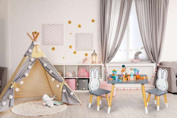eredeti gyerekasztal székekkel, aranyos nyuszis motívummala bútorkészlet egy asztalból és két székből áll.lakkozott MDF-lapból és szépen megmunkált fenyőfa lábakból készült.az asztal tartós asztallappal rendelkezika bútor karcállóminden széle simára van simítva és biztonságos a gyermekek számáraa termék súlya: 9,2 kg