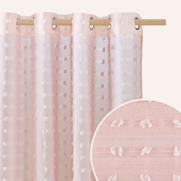 Csodás egyedi függöny különleges dizájnnal. A kifinomult függöny átereszti a nappali fényt, mégis a megfelelő diszkréciót biztosítja. A fémkarikák lehetővé teszik a függöny könnyű felfüggesztését. Varázsolja el szobáit ezzel a csodás függönnyel!Specifikációk:Színe: rózsaszínAnyaga: 100% poliészterMéretek: 350 x 250 cmRögzítés módja: 8 ezüst fémkarika, belső átmérő - 4 cmDarabszám: 1 darab