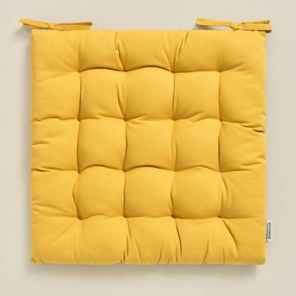 Egy kis luxust és eleganciát keres otthonába? Ez a csodás 100% pamutból készült székpárnánk nélkülözhetetlen kiegészítője lehet otthonának. A párna prémium minőségű anyaga biztosítja a kényelmes ülést és megvédi a széket az esetleges sérülésektől. A székpárna sarkain 24 cm-es madzagok vannak a székhez való könnyű rögzítés érdekében. Specifikációk: Színe: sárgaMéretek: 40 x 40 x 4,5 cmAnyaga: 100% pamutTöltet: 100% poliészterA puha és kiváló minőségű anyag biztosítja a kényelmes ülést és védi a széket.