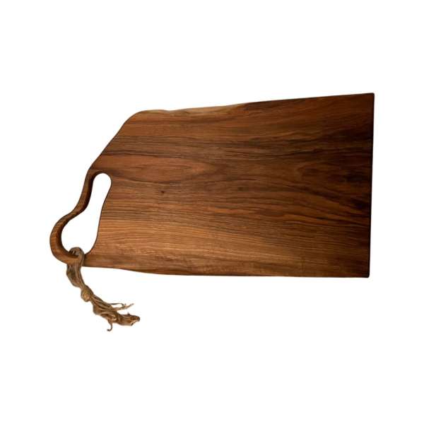A vágódeszkák minden konyhában elengedhetetlenek. Válassza ki az ideális vágó- vagy tálalódeszkát. Egy fából készült deszkán különböző hideg ételeket, például savanyú sajtot, gyümölcsöt vagy süteményeket tálalhat. A fából készült termékek egyedisége miatt az egyes darabok faanyagában és a termék méreteiben +/- 1 cm eltérés lehet. Az anyag természetes jellege és a kézzel készített termék jellege miatt a termék színe némileg eltérhet a weboldalon láthatótól, illetve a termék apró repedéseket vagy egyenetlenségeket tartalmazhat. Minden egyes darab egyedi, eredeti darab. Specifications: Szín: természetes barna Anyag_ fa - diófa, kötél Méretek: hossza 69 cm, szélessége 37 cm, vastagsága 20 mm. Felület: természetes olaj, amely alkalmas élelmiszerrel való érintkezésre. Nemcsak vágásra, hanem hideg ételek tálalására is alkalmas Egészségügyi szempontból biztonságos természetes olajjal kezelt hosszú élettartam