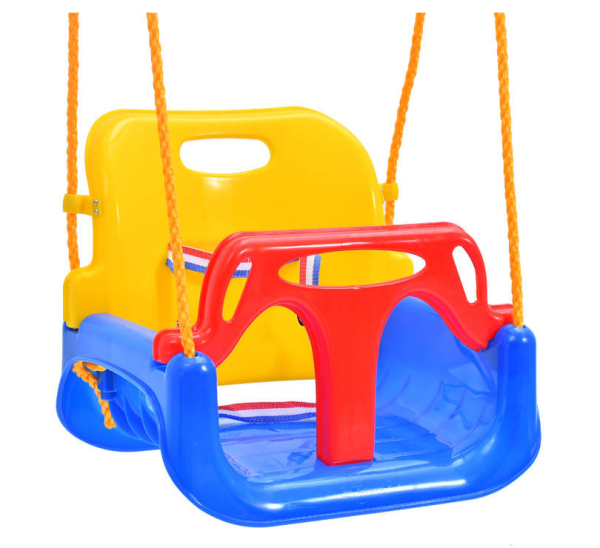 Ez a hinta tökéletes a gyermekek számára, több évszakra is megfelelő lehetőség, mert alkalmazkodik a gyermek életkorához és igényeihez. A hinta könnyen átalakítható 3 különböző módon, a gyermek életkorától függően, de ugyanolyan biztonságot nyújt.A hinta fokozott biztonságot és védelmet nyújt a gyermek számára. A háttámla is rendelkezik biztonsági övvel. A hintához rögzített kötelek állíthatók, a gyermek magasságához igazíthatók, és az összeszereléshez fémgyűrűk vannak. Az anyag, amelyből készült, speciális csúszásgátló bevonattal rendelkezik, amely még akkor is védelmet nyújt, ha a gyermek már elég idős ahhoz, hogy a hintat csak üléseként, védelem nélkül használhassa.A 3 az 1-ben hinta a következőképpen alakítható át:6 hónapos és 3 év közötti gyermekek számára készült, üléssel, háttámlával és védőgáttal a láb számára3 és 5 év közötti gyermekek számára ajánlott, amelyben a lábak védőgátja leválik, és a hinta üléssel és háttámlával van kialakítva5 éves kortól alkalmas gyermekek számára, mivel a hinta így egyszerű, csak ülőből áll. Specifikációk:Színe: többszínűÜlésmélység_ 35 cmÜlésszélesség_ 43 cmMagasság háttámlával: 38 cmHáttámla szélessége: 35 cmMaximális kötélhossz: 180 cm
