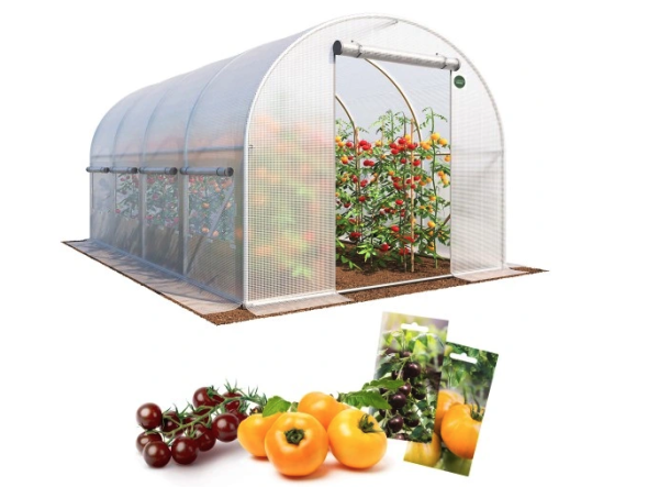 A fóliasátraink olyan ideális körülményeket teremtenek a növényeknek, melyet az adott időszakban a szabad ég alatt nem lehetne biztosítani számukra. A kerti fóliasátor megvédi a növényeket az időjárás viszontagságaitól és ideális körülményeket biztosít számukra. A fóliasátor ideális alternatívája a hagyományos üvegházaknak, ugyanolyan jó termesztési feltételeket biztosítva a növényeknek. A fóliasátrak előnyeiről itt olvashat bővebben: A-tól Z-ig műanyag üvegházak – minden, amit tudni kell róluk. A váz vastag, 20 mm-es acélprofilokból készül A fóliasátor szekciókra van osztva A szekcióknak köszönhetően a fóliasátor sokkal stabilabb és erősebb Gerendákkal megerősített profilokból áll, ami biztosítja az egész szerkezet stabilitását A vázat két rétegben kiváló minőségű cinkkel horganyozzák Ellenálló az időjárási viszontagságaival szemben A fóliasátoron 6 ablak van, amelyeknek köszönhetően szabályozható a hőmérséklet és a páratartalom Biztosítja a jó szellőzést Ez ideális termesztési feltételeket teremt A szúnyogháló kiváló védelmet nyújt a kártevők ellen Az ablakok tépőzárral zárhatóak A fóliasátor tépőzárral ellátott ajtóval rendelkezik, így kívülről és belülről is gyorsan és egyszerűen csukható Ez lehetővé teszi, hogy megvédje növényeit az esőtől és a széltől A nagyméretű ajtó könnyen feltekerhető Ez megkönnyíti az öntözést és a trágyázást A kiváló minőségű kötelek és a védőpántok további védelmet nyújtanak A 140 g/m2 grammsúlyú fólia UV-szűrővel van ellátva Az UV-szűrő megvédi a növényeket a behatoló sugárzástól Ezenkívül hálóval van megerősítve Ezáltal szakadás- és sérülésállóvá válik A fólia teljes szélességében és hosszában körbefutó földköténnyel van ellátva A földkötény stabilizálja a szerkezetet A földkötényt földdel vagy kövekkel kell befedni CSOMAG TARTALMA: Kiváló minőségű fémváz Megerősített fólia UV-szűrővel Használati útmutató Csavarok, anyák és szerelőkulcs SPECIFIKÁCIÓK: A fóliasátor méretei 2,5 x 4 m Hossza: 400 cm Szélesség_ 250 cm Magasság_ 200 cm 20 mm átmérőjű acélprofilok 0,7 mm átmérőjű profilok a falak mentén. Mindkét oldalán horganyzott A fólia grammsúlya: 140 g/m2 Fólia UV-5 szűrővel Hosszú élettartamú hálóval megerősítve Teljes súlya: 30 kg MINDEN TERMÉKKÉP ILLUSZTRÁCIÓ! A FÓLIA FEHÉR SZÍNŰ!
