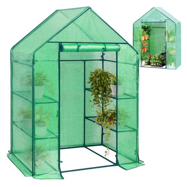 A kerti fóliasátor tökéletesen megvédi a növényeket az időjárási viszonyoktól és a hívatlan kártevőktől. A kerti fóliasátor tartós, stabil vázzal rendelkezik, így több éven át használhatja. A szezon után nagyon könnyen összecsukható és tároláskor kevés helyet foglal. Rendkívül praktikus 140 x 73 x 200 cm méretű fóliasátor 4 polccalA kerti fólia biztosítja:védelmet nyújt a napfénytőlgyorsabb termésnövekedésfriss gyümölcsök és zöldségekhőtartás a belső térbenelegendő nedvességet biztosít a növények számárakedvező mikroklíma a növények számáraSpecifikációk:Méretek: 140 x 73 x 200 cmAnyaga: UV4 szűrővel ellátott PE fólia 140g/m²A fóliába ágyazott zöld PP háló véd a szakadás ellenStabil 16 mm átmérőjű acélkeret PP csatlakozókkal4 széles polcCipzárral zárható ajtóStabilizáló zsinórokkal felszerelve