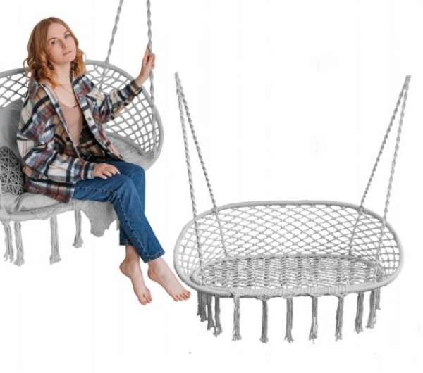 Fantasztikus hinta háttámlával - dupla függő fotel. A szék bölcsője tökéletesen illeszkedik a legdivatosabb belső terekbe. Felakaszthatja a pavilonba, teraszra, erkélyre, valamint a hálószobába vagy a nappaliba. Az erős szövettel átszőtt dupla szerkezet magával ragadóan néz ki. Ráadásul a szerkezeti elemek becsomagolása miatt gyermekek és felnőttek általi használatra is adaptálták. Könnyű és gyors összeszerelés.Specifikációk:Dupla függő fotel - hinta - bézsSzíne: bézsAnyaga: 65% poliészter, 35% pamutVáz anyaga: porszórt acélszerkezetMagassága: 100 cmÜlőfelület mérete: 110 x 62 cmKeret átmérője: 22 mmKeret vastagsága: 0,7 mmHáttámla magassága: 40 cmMaximális terhelhetőség_ 200 kg