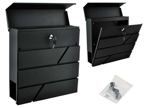 A postaláda horganyzott acélból készült, így nem fog rozsdásodni, és hosszú éveken át tudja használni. A levélnyílást egy speciális fedél védi, ami megóvja a leveleket a kedvezőtlen időjárási viszonyoktól. Specifikációk:Színe: antracitAnyaga: horganyzott acélMéretek: 36,7 x 37 x 10 cm (Ma x Szé x Hossz)Súlya: 3,5 kgTartalmazza a felszereléshez szükséges összes elemet.Strapabíró zárral felszerelt, két kulcs jár hozzá.
