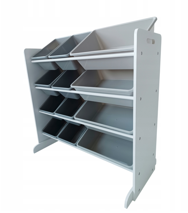 A játékszervező 12 különböző méretű műanyag tárolót tartalmaz. A stabilkonstrukció biztosítja a hosszú élettartamot. A szervező rendben tartja gyermeke szobáját és játékait, mivel megkönnyíti gyermeke számára a játékok rendszerezését játék után. A 3 éves kortól kezdődő gyermekek számára készült. Specifikációk: Doboz színe: szürke Méretek: Méretek: 80 cm x 30 cm x 85 cm Doboz méretei: 29 cm x 20 cm x 13 cm, 29 cm x 40 cm x 13 cm A készlet a következőket tartalmazza: polc, 12 tároló, útmutató és összeszerelési készlet.