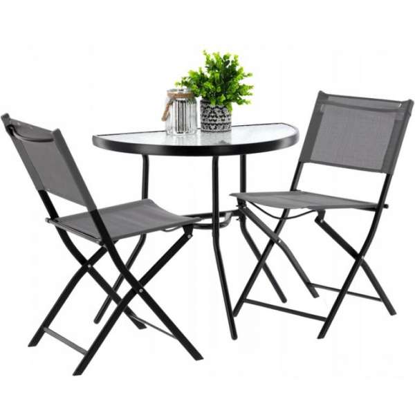 A GARDENLINE kertibútor szett tökéletes azok számára, akik a klasszikus és az elegancia kombinációját keresik. Bármilyen térbe illeszkedik - az erkélyen, a teraszon vagy a kertben. Az asztal edzett üvegből készült, átlátszó mozaik textúrával (önálló összeszereléshez), minden bizonnyal hosszú évekig használható. A burkolat a keretre feszített sűrű fonatból készült. Specifikációk:Színe: szürkeAsztal méretei: 64 x 70 x 40 cm (Ma x Szé x Mé)Váz átmérője: 22 mm Edzett üveg vastagsága: 5 mmSzék méretei: 80 x 46 x 42 cm (Ma x Szé x Mé)Váz méretei: 14 x 28 mmCsomag tartalma:1 asztal, 2 összecsukható szék