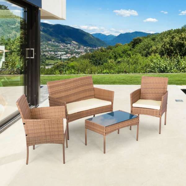 A sokoldalú rattan bútorszettünk igazi dísze lehet a kertjének, a teraszának vagy a kertjének. A kényelmes székek és az elegáns asztal arra ösztönzik, hogy a családjával és a barátaival töltse az időt. A rattan hatású szett nemcsak elegáns megjelenésével, hanem hosszú élettartamával is lenyűgözi.A készlethez tartozó párnák puha habszivaccsal vannak töltve. A huzatok hátulján cipzár található, így könnyen eltávolítható és tisztítható. A párnahuzatok impregnáltak és vízállóak, ami nagyszerű védelmet nyújt a foltok és szennyeződések ellen.Specifikációk:Anyaga: technorattan, edzett üveg, poliészter/ PP habSzett: 2 db szék, kanapé, asztal üveglappalMéretek: Szék: 82 x 59 x 51 cm (MaxSzéxMé)Kanapé: 82,5 x 102 x 52 cm (MaxSzéxMé)Asztal: 39 x 71 x41 cm (MaxSzéxMé)Maximális terhelés: székek - 160 kg, kanapé - 250 kg