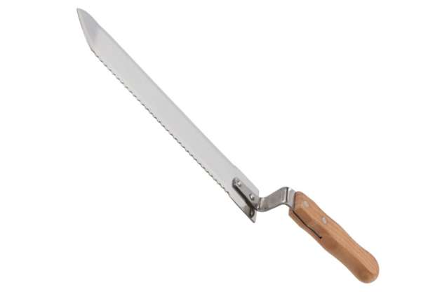 Ideális eszköz a méhészeti munkákhoz.Speciálisan profilozott és élezett, a penge egyik oldalán fogakkal ellátott. Hullámos élének köszönhetően roncsolásmentes sejtnyitást tesz lehetővé. A megfelelően profilozott pengének köszönhetően lehetővé teszi a szabálytalanul felépített keretek pontos kibontását is.Specifikációk:Sima és hullámos élErgonomikus fa nyél a kényelmes munkavégzéshezAnyaga: fa + rozsdamentes acélPengehossz: 28 cmNyél hossza: 13 cmPenge szélessége: 4, 5 cm