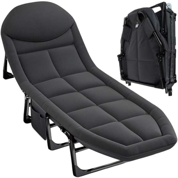 Ez a tartós és stabil vasvázas ágy akár 150 kg-os terhelést is elbír, így ideális hosszú távú és alkalmi használatra. A lábakon lévő védőborítások megvédik a padlót a sérülésektől, így otthon, az erkélyen vagy a pavilonban is biztonságosan használható. Az egyszerű, szerszámok nélküli, másodpercek alatt történő összecsukást a QR kóddal ellátott gyors összecsukási rendszer teszi lehetővé, amelyhez video-utasítások is tartoznak. Az állítható fejtámla 5 irányban (0°-tól 90°-ig) állítható dőlésszöggel maximális kényelmet biztosít a fekvéstől az egyenes ülésig. A puha matrac és a tartós OXFORD anyag tökéletesen alkalmazkodik a testhez, garantálva a kényelmes alvást otthon és terepen egyaránt. Összecsukott, kompakt méreteinek köszönhetően könnyen tárolható és szállítható - az ágy könnyedén elfér az autó csomagtartójában. A praktikus oldalzseb lehetővé teszi, hogy telefonját, könyvét vagy távirányítóját mindig kéznél tartsa. Az ergonomikus, puhán párnázott fejtámla csökkenti a nyaki feszültséget, és optimális alátámasztást biztosít pihenés közben. Specifikációk: Maximális terhelhetőség_ 150 kg Matracvastagság_ 5 cm Méretek: méret: 200 x 65 x 30 cm Súly: 5,2 kg Csomagolási súly: 6,5 kg Matrac színe: szürke Váz színe: fekete Anyag_ vas + poliészter + oxford 600D + PP pamut + PP