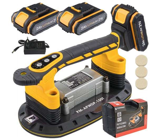 A rezgő tapadókorong POWERMAT PM-APWDP-150T tökéletes eszköz a hatékony csempefektetéshez, amely nemcsak beltéren, hanem kültéren is használható. Ez az akkumulátoros eszköz kiváltja a hagyományos kézi munkát, és kiküszöböli a csempe alatti egyenetlen ragasztóeloszlással járó problémákat. A tapadókorong két nagy teljesítményű 21 V-os akkumulátorral van felszerelve, ami folyamatos, szünet nélküli munkát tesz lehetővé. Emellett rezgésvezérléssel is rendelkezik, amely segít megszüntetni a ragasztó és a csempe közötti légbuborékokat, megakadályozva ezzel a csempe repedését. A tapadókorongot úgy tervezték, hogy lehetővé tegye a csempék könnyű felemelését és megfelelő felhelyezését, maximális terhelhetősége pedig akár 150 kg is lehet. Speciális formájának és ergonomikus fogantyúinak köszönhetően könnyen kezelhető, és használat közben stabilitást biztosít. A tapadókorong kompakt és könnyű, így ideális megoldás mind a profi, mind a barkácsoló barkácsolók számára. Specifikációk: Teljesítmény: 21V-os akkumulátor (2x 2000mAh) Vibrációs beállítás: 6 szint Maximális terhelés: 150 kg Szívócsésze méretei: 280x150 mm A készülék súlya: 2,7 kg (akkumulátorral) Működési idő: Legfeljebb 1,5 óra Maximális töltési idő: 1,5 - 2 óra Tartalmazza a következőket: 2 akkumulátor, 1 töltő, 1 imbuszkulcs, 3 szivattyúszűrő A rezgésvezérlés és az intuitív működés teszi ezt a tapadókorongot felbecsülhetetlen értékű eszközzé a csempefektetéshez, időt és fáradságot takarítva meg Önnek. A POWERMAT tapadókoronggal minden csempe pontosan a helyén lesz!