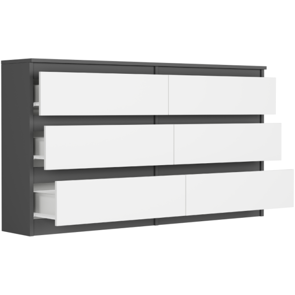 A modern R-140 komód ideális választás azok számára, akik stílusos, funkcionális és helytakarékos belsőépítészeti megoldást keresnek. Egyszerű, mégis elegáns, fogantyú nélküli kialakításának köszönhetően időtállónak tűnik, és tökéletesen illeszkedik mind a modern, mind a klasszikus hálószobákba vagy nappalikba.A tágas fiókok praktikus tárolóhelyet kínálnak ruhák, ágyneműk, dokumentumok vagy olyan apróságok számára, amelyeket mindig kéznél kell tartania. A komód kiváló minőségű laminált lapból készült, amely garantálja az erőt, a tartósságot és a hosszú élettartamot. Az innovatív színkialakítások kellemes hangulatot kölcsönöznek a bútornak, és könnyen kombinálhatók más bútorokkal.Műszaki adatok:Szín: különböző színű kivitelek állnak rendelkezésreAnyag_ laminált forgácslapMagasság_ 77 cmSzélesség_ 140 cmMélység_ 30 cmStílus: modern, minimalistaÖsszeszerelés: bútor önszerelésre