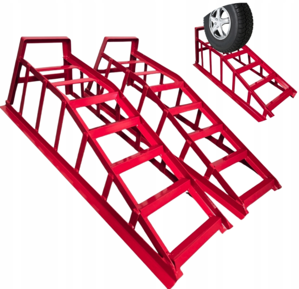 A fém autórámpák praktikus segítői mindenkinek, aki szeretné megkönnyíteni a szervizmunkákat a garázsban vagy a műhelyben. Ez a 2 darab masszív acélból készült rámpából álló készlet lehetővé teszi, hogy biztonságosan megemelje járművét, és könnyedén hozzáférjen az alvázhoz olajcseréhez, kipufogóellenőrzéshez vagy kisebb javításokhoz. A vastag falú szelvényekből készült robusztus hegesztett konstrukciónak köszönhetően lényegesen nagyobb szilárdságot és stabilitást nyújtanak, mint a hagyományos préselt vékonylemez rámpák.A rámpa felületét enyhe lejtéssel tervezték, hogy megkönnyítse a jármű zökkenőmentes behajtását anélkül, hogy a lökhárító sérülését kockáztatná. A biztonsági ütköző megakadályozza, hogy a nem kívánt járművek lehajtsanak a rámpáról, a több ponton elhelyezett megerősítések pedig növelik az általános merevséget és a biztonságot a használat során. A védőfesték megvédi a fémet a korróziótól, így a rámpák hosszú távú használatra alkalmasak műhelyben, garázsban és otthoni környezetben. Ideális megoldás a hobbiszerelők és a megbízható és tartós, 2 tonnás teherbírású autórámpákat kereső szakemberek számára.Specifikáció:Terméktípus: autós rámpák / szervizrámpákDarabszám a csomagban: 2 dbTeherbírás: 2000 kg / készlet (1000 kg / 1 db)Teljes hossz: 85 cmTeljes szélesség_ 26 cmBelső szélesség felül: 19 cmBelső szélesség alul: 20,5 cmTeljes magasság_ 28 cmJárműemelő magassága: 19 cmSúly rámpánként: 5,5 kgAnyag_ acélSzerkezet: hegesztett, megerősítettFelületvédelem: korrózióvédő lakkozásSzín: piros
