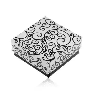 Ajándékdoboz fülbevalóra - fekete-fehér fedél inda mintával