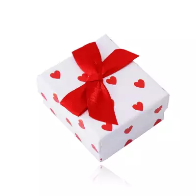 Ajándékdoboz fülbevalóhoz – fehér színű, piros szívek egy masnival