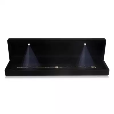 Ajándék díszdoboz karkötőhöz LED lámpával – matt fekete színű, hosszúkás formával