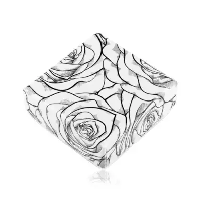 Ajándékdoboz fülbevalóra vagy két gyűrűre, fekete rózsavirág minta fehér alapon
