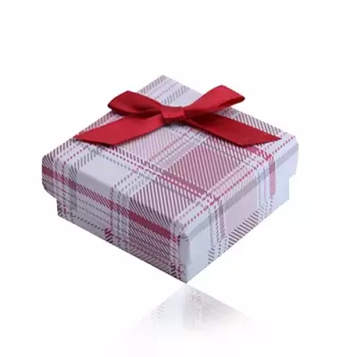 Ajándékdoboz gyűrűre, fülbevalóra, medálra és nyakékre, piros kockás minta, szalag