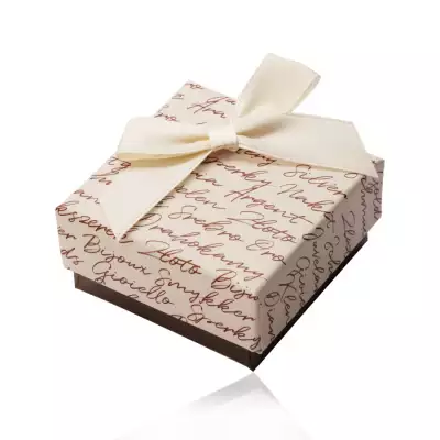 Ajándék doboz fülbevalókhoz vagy gyűrűkhöz - bézs-barna színkombináció, masnival, felirattal