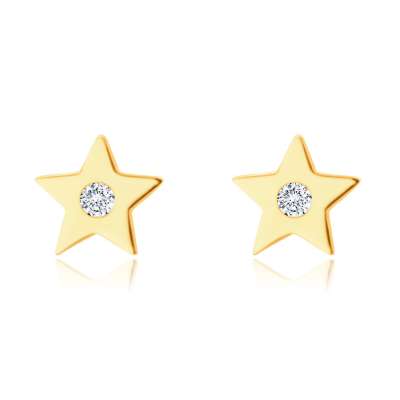 14K sárga arany gyémánt fülbevaló - ötágú csillag,briliánssal