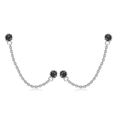 925 ezüst dupla fülbevaló - egy virág fekete cirkóniával, lánccal, stekkerzárral