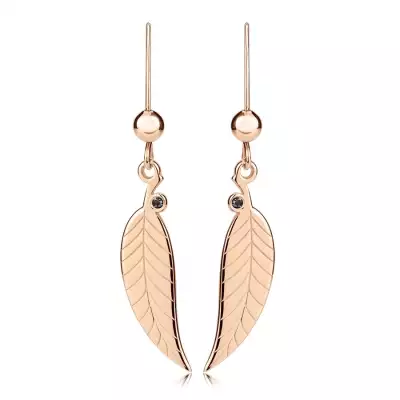 925 Ezüst briliáns fülbevaló – levél fekete gyémánttal, rózsa-arany színben
