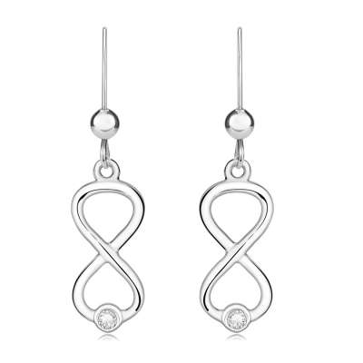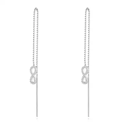 925 ezüst befűzős fülbevaló - Végtelen szimbólum láncon, cirkóniák