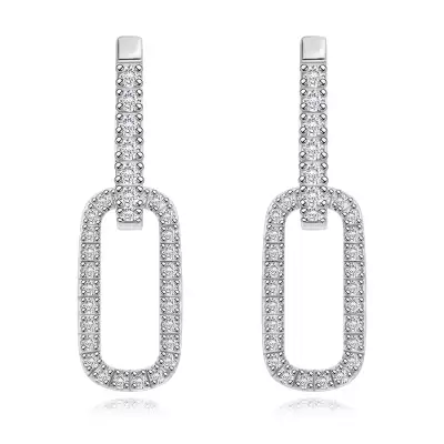 925 ezüst befűzős fülbevaló - átlátszó cirkóniák, lánc ívvel
