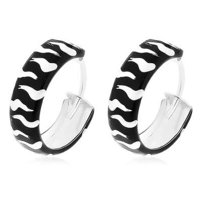 925 ezüst fekete fehér fülbevaló, fénymázas felülettel, 15 mm