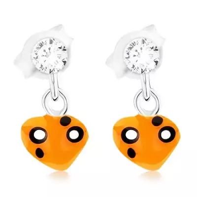 925 ezüst beszúrós fülbevaló, narancssárga szív, kristályok