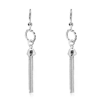 925 ezüst függő fülbevaló - karika és bojt láncokból, horgok