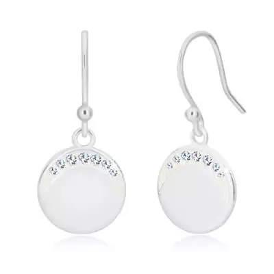 925 ezüst függő fülbevaló - tükörfényes karika cirkóniás félholddal