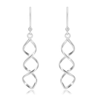 925 ezüst függő fülbevaló - fényes kettős spirál, afrikai horog