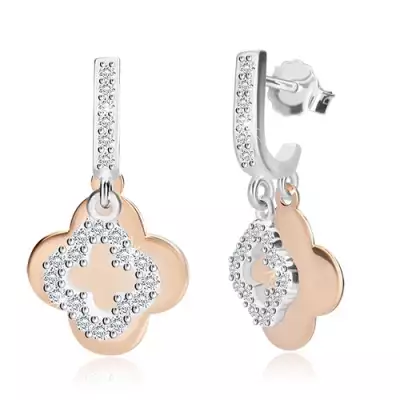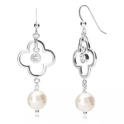 925 ezüst függő fülbevaló - kontúr négylevelű lóhere, cirkónia, gyöngy, akasztós