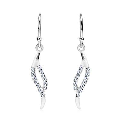 925 ezüst függő fülbevaló - keskeny levél két cirkóniás hullámból
