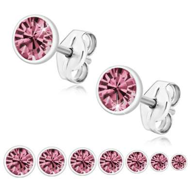 925 ezüst beszúrós fülbevaló, világoszöld kerek cirkónia, 5 mm
