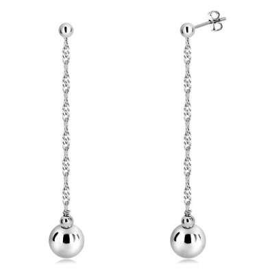 925 ezüst függő fülbevaló - tükörfényes gyöngy és csavart lánc