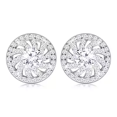 925 ezüst beszúrós fülbevaló - kerek virág körvonala egy átlátszó cirkóniával középen