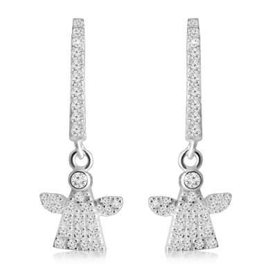 925 ezüst bepattintós fülbevaló - karika és angyalka tiszta cirkóniával díszítve