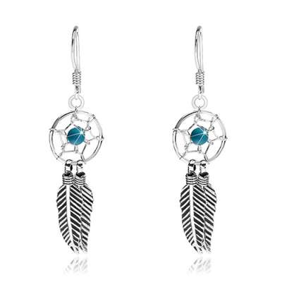 925 ezüst függő fülbevaló, fekete gyöngy, álomfogó, 20 mm