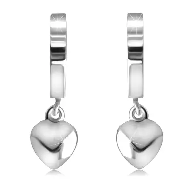 925 ezüst bepattintós fülbevaló – tükörfényes karikák egy szívvel, sima felület