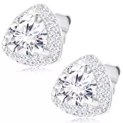 925 ezüst bedugós fülbevaló - csillogó cirkónia háromszög, átlátszó szegély