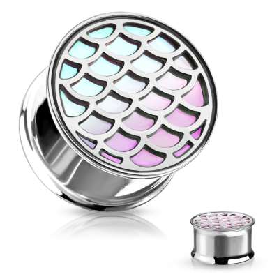316L acél fültágító dugó – halpikkelyek szivárványos hatással, fényes felület - Vastagság_ 12 mm