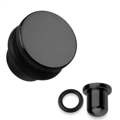 316L acél fültágító dugó fekete színben, fekete gumigyűrűvel, különböző szélességekben - Vastagság_ 8 mm