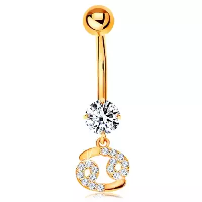 14K arany piercing köldökbe - átlátszó cirkónia, csillogó csillagjegy szimbólum - RÁK