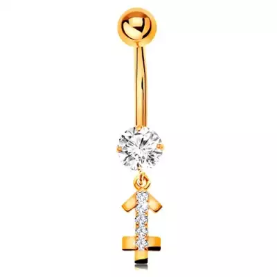 14K arany köldök piercing - átlátszó cirkónia, fényes csillagjegy szimbólum - NYILAS