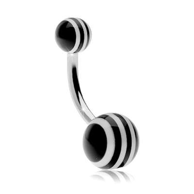 316L acél köldök piercing, fekete-fehér csíkos golyók - A piercing színe: Fekete