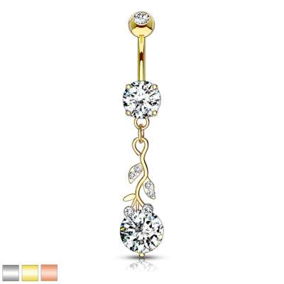 316L acél köldök piercing - futónövény kerek cirkóniával - A piercing színe: Arany
