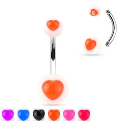 316L acél köldök piercing - fehér akril gyöngyök színes UV szívvel - Szín: Narancssárga